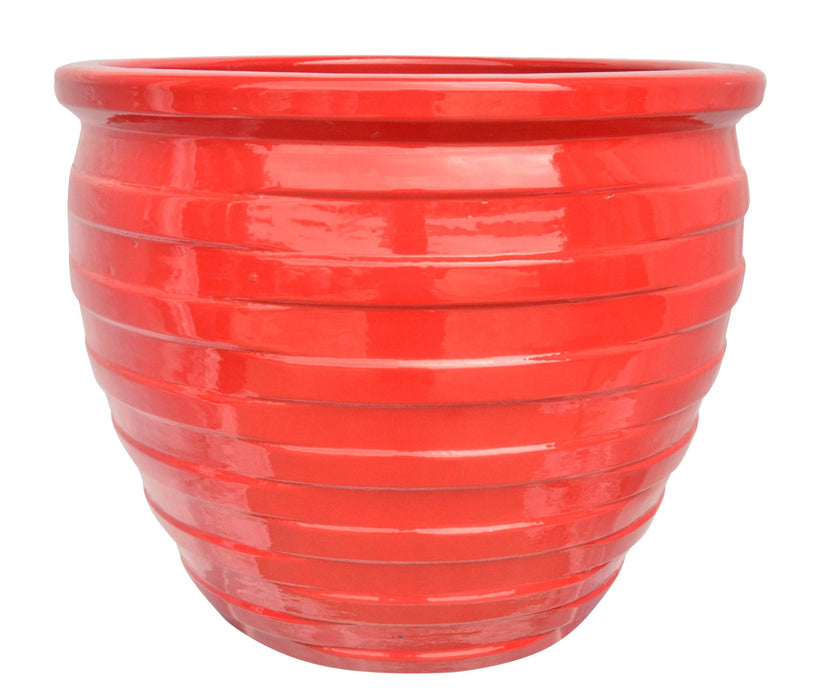 Red Ripple Glazed Ceramic Pot Set - Decorative Planters for Indoor & Outdoor Use (Set Of 3)
