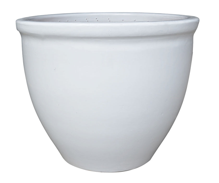 White Round Glazed Ceramic Planter (Set Of 3)