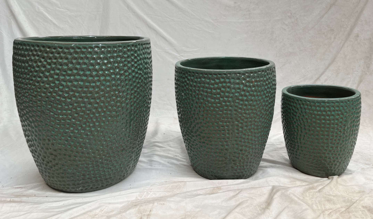 Rain Green Ceramic Planters - Set of 3 Self-Patterned Pots