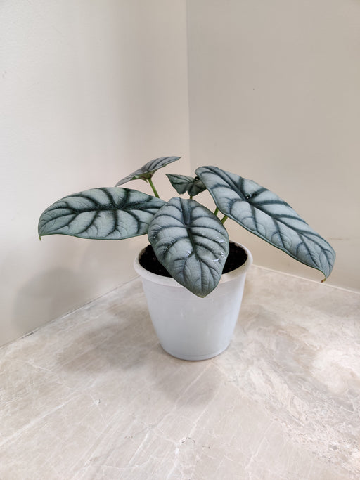 Alocasia silver dragon plant has unique leaves resembling dragon scales. Perfect for adding a statement or a complementary touch to your plant collection.