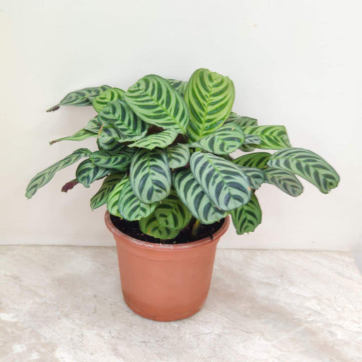 An exotic indoor plant that has glossy leaves in luscious hues of green with stunning veinings and brushstrokes. Calathea plants are widely bought for their exotic appearance. Calathea plants are also known as the prayer plant. Admired for its foliage, these low-maintenance plants can stay thriving if you show them a bit of love and care.