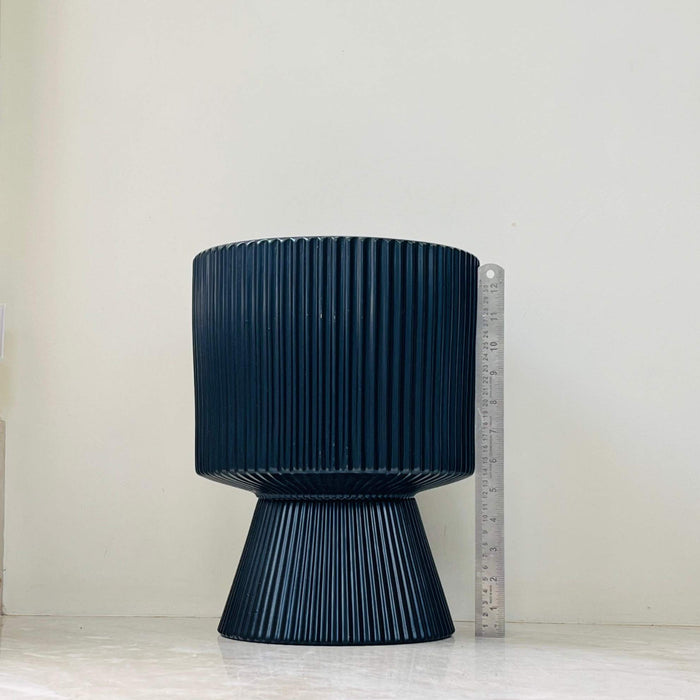 Black Ribbed Ceramic Planter with Flared Base – Modern Decorative Pot