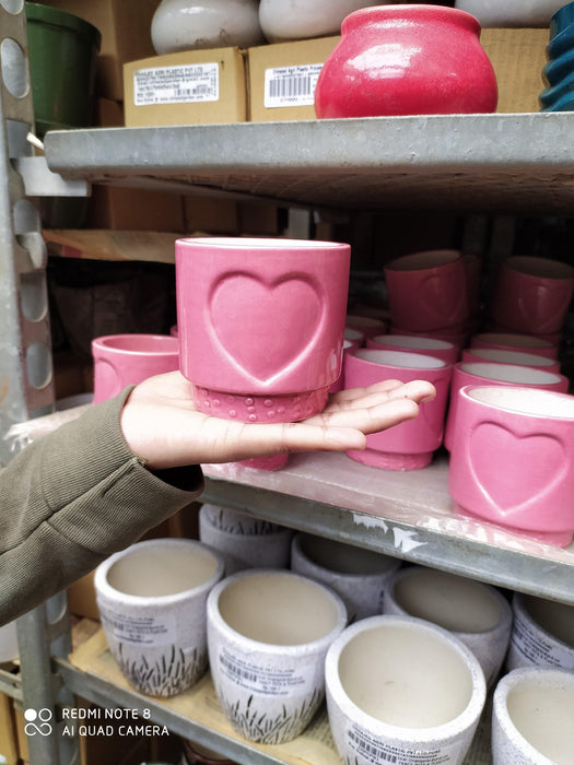 - Elegant and Versatile: Add a touch of elegance to your home decor with this set of 6 ceramic mini round and heart design planters in a vibrant red color.