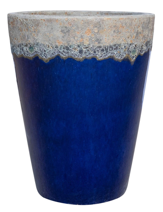 Royal Blue Tall Volcanic Ceramic Pots Set Of 3- Decorated Flower Garden Planter
