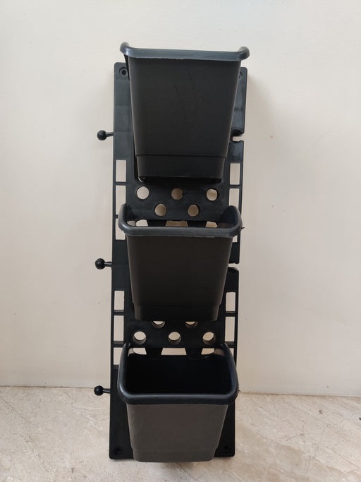 Product Name :Vertical Wall Garden Model Vertigreen Black (1 Frame + 3 Pots) Panel Size : 19 Inch (H) X 6.5 Inch (L) & Pot Size : 7(L) X 4.5(H...