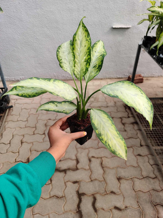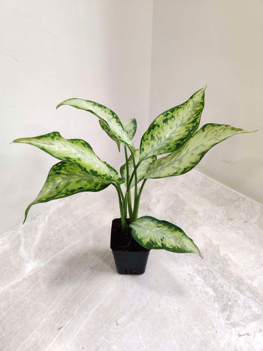 Plant Profile: Unlike its name, Dieffenbachia X Bausei is an easy-going plant. A perennial plant bragging vibrant deep green leaves with charming yellow and lime green spots, complemented by a delicate whitish-green central leaf vein. This air-purifying houseplant is a breeze to care for, making it an ideal choice for both homes and offices. Symbolizing growth and vitality, this Dieffenbachia variety would make a meaningful gift. With a preference for medium sunlight and moderately dry soil, Dieffenbachia 'X Bausei' will add effortless elegance and color to your indoors without fuss.