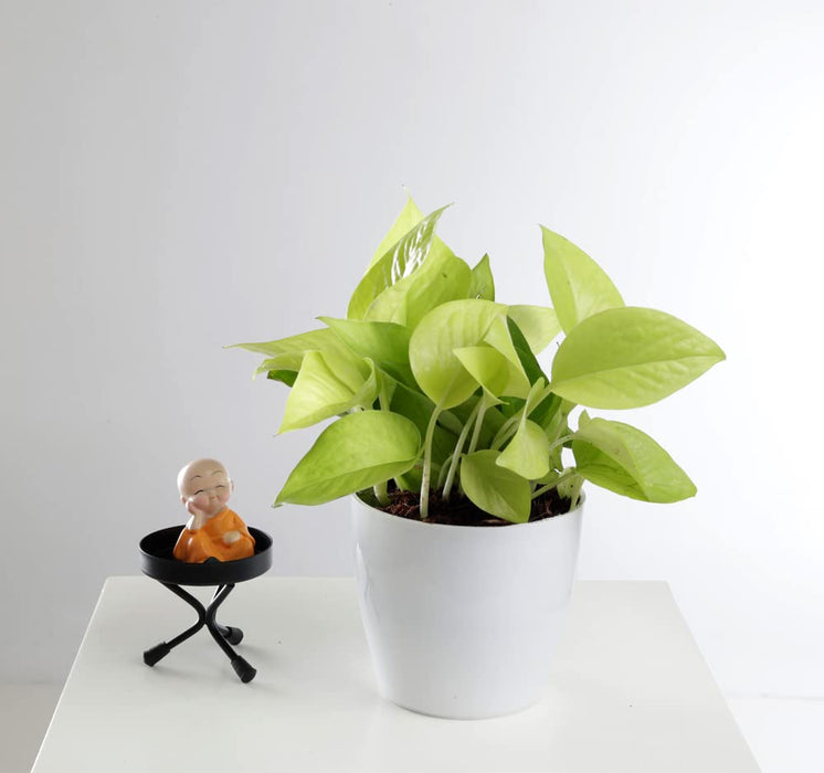 Money Plant Golden (Epipremnum Aureum 'Golden') is a popular houseplant for vibrant addition to any indoor space, boasting large, glossy, light yellow heart-shaped leaves that gleam with a golden green hue. Not only is it easy to grow and low-maintenance, but it also serves as an effective air purifier, eliminating indoor pollutants for a healthier environment. According to Vastu and Feng Shui, it attracts wealth and positivity, making it an ideal addition to any home or office. Plus, it thrives in low light conditions, ensuring hassle-free growth. With NASA's approval for air purification, money plant golden pothos is a must-have for your indoors.