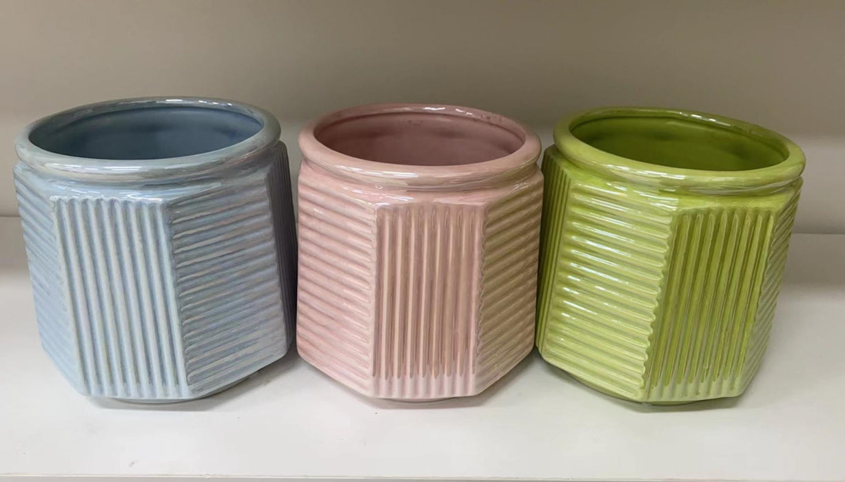 Textured Hexagonal Ceramic Planter