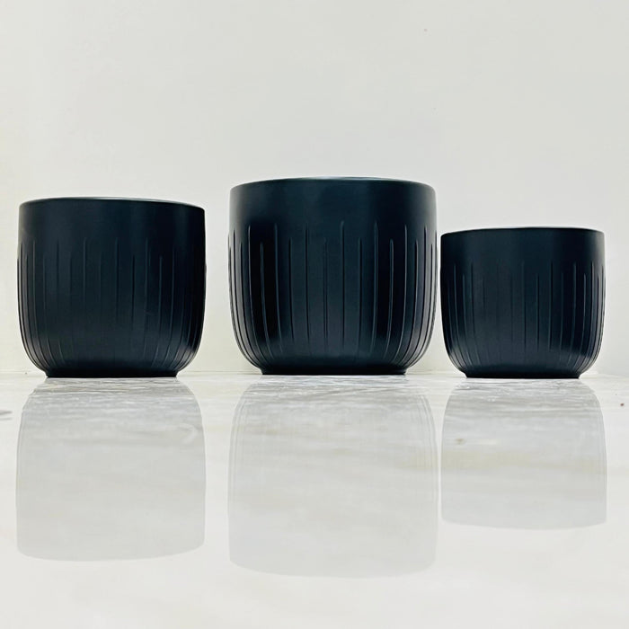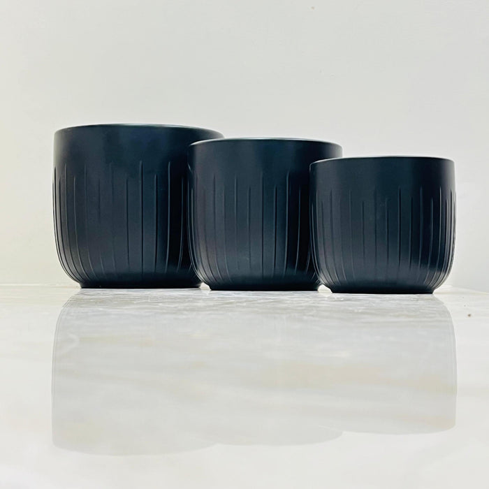 Matte Black Ribbed Ceramic Planter Set Of 3