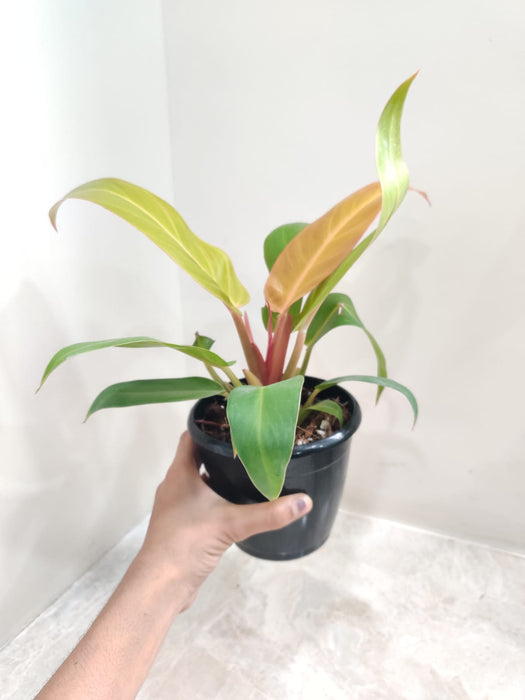 Our best-selling Philodendron Sunshine is a beautiful hybrid, self-heading plant that requires less attention to thrive. With its vibrant red-green leaves, it adds a splash of color to any room. Plus, it's super easy to take care of, so you can enjoy its beauty without the hassle. Not only does it look great, but it also cleans the air, making your home fresher and healthier. And here's a bonus: it's known to help you relax and sleep better too.