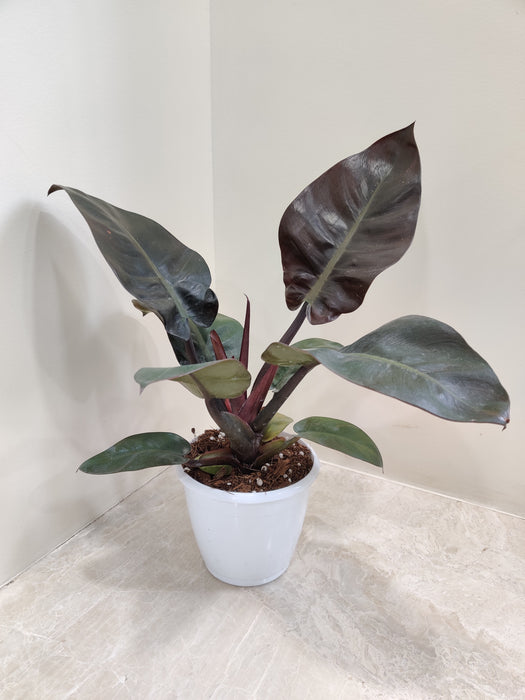 Philodendron Black Cardinal features glossy bronze and blackish-green leaves, with broadly oval or lance-shaped foliage initially emerging light orange or bronze. Low maintenance and thriving in bright, warm indoor spaces, it's perfect for home decor. Best grown in well-drained, moist soil with partial shade, as excessive light or inadequate moisture may cause leaves to pale or brown.