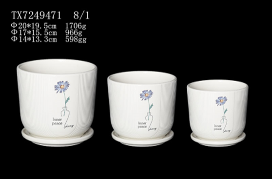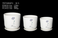 White Ceramic Round Pot with Creative Plant Design- Set of 3 | Modern Design